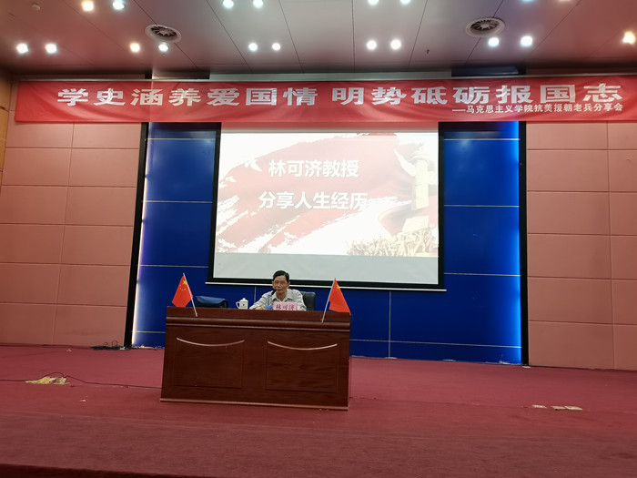 为引导学生深入学习“四史”,弘扬伟大抗美援朝精神,11月19日,马克思主义学院邀请原马列教研部主任、抗美援朝老兵林可济教授参加“学史涵养爱国情,明势砥砺报国志”主题团日活动,与师生分享抗美援朝故事和人生奋斗经历。马克思主义学院党委副书记阮传瞰、全体辅导员及爱体育网_爱体育网(中国)退伍兵协会代表参加活动。