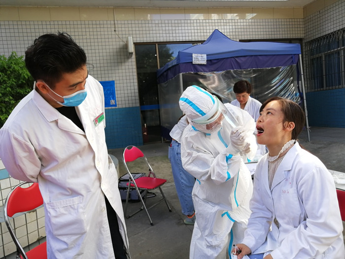 1118日,在仓山区卫健局组织下,校医院全体医务人员在仓山校区医院一楼小广场进行全员核酸检测,检验科医生和护士在第三方检测机构的现场培训指导下进行了核酸检测采集实操。