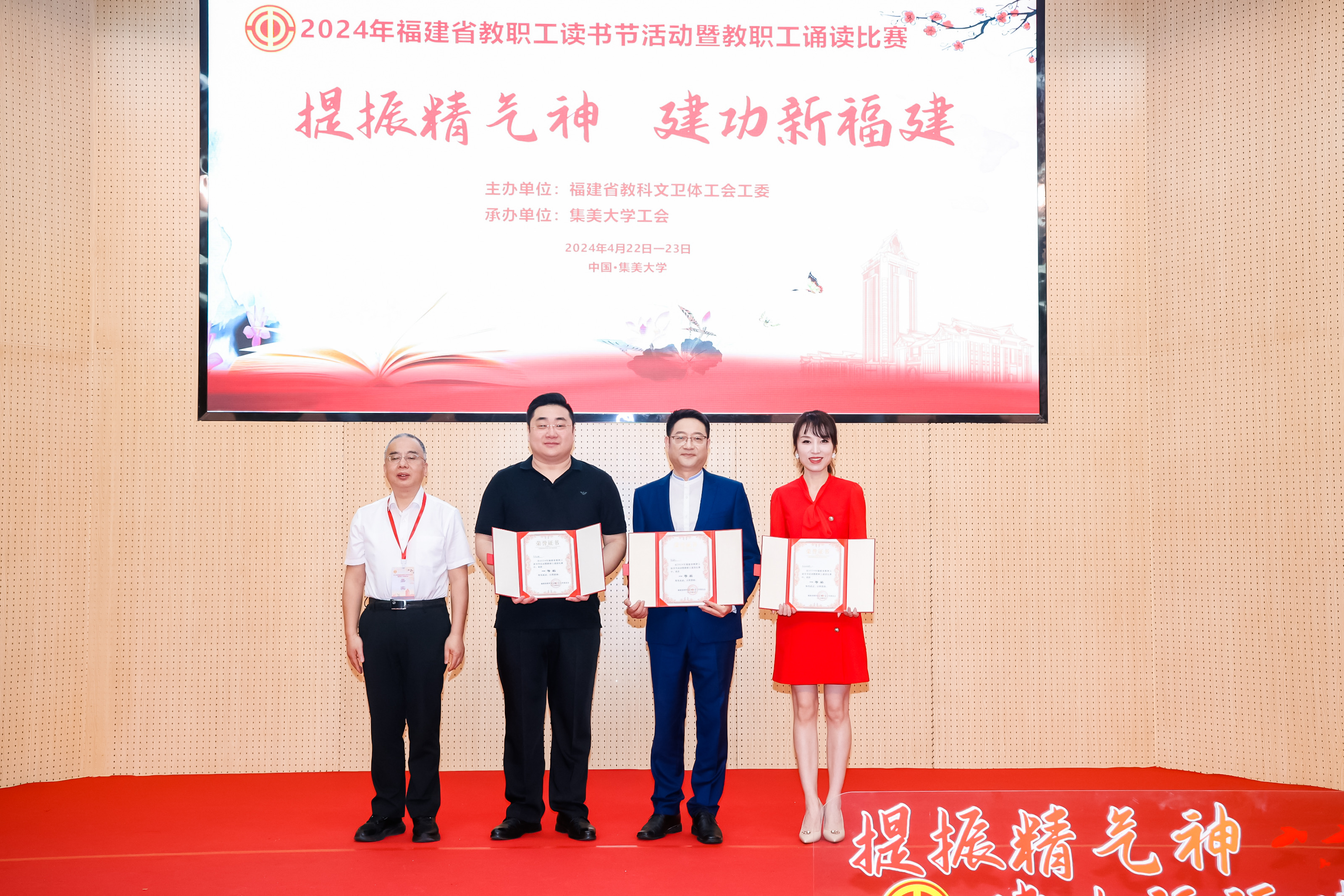 4月23日,由福建省教科文卫体工会主办、集美大学工会承办的2024年全省教职工读书节活动暨“提振精气神 建功新福建”教职工诵读比赛在集美大学举行。爱体育网_爱体育网(中国)传播学院彭飙、欧阳丹娜两位老师演绎的作品《等待》获得一等奖(全省第一名),学校获评优秀组织单位。作品《等待》取材于“两弹元勋”邓稼先先生的感人事迹。彭飙、欧阳丹娜两位老师以质朴的语言、真挚的情感,讲述了邓稼先先生为祖国国防事业无私奉献的一生,引发了现场观众的强烈共鸣。(校工会)