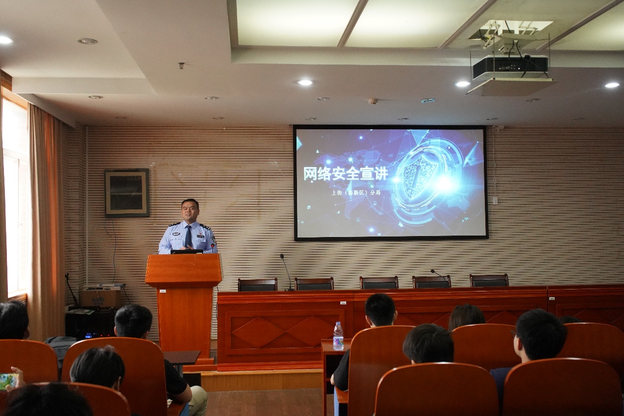 近日,保卫处联合计算机与网络空间安全学院开展国家安全宣传教育活动,邀请福州市公安局上街(高新区)分局长安派出所施豪杰、许杰峰两位警官为学院学生举行网络安全及预防电信诈骗专题讲座。