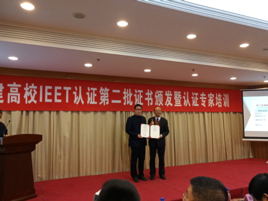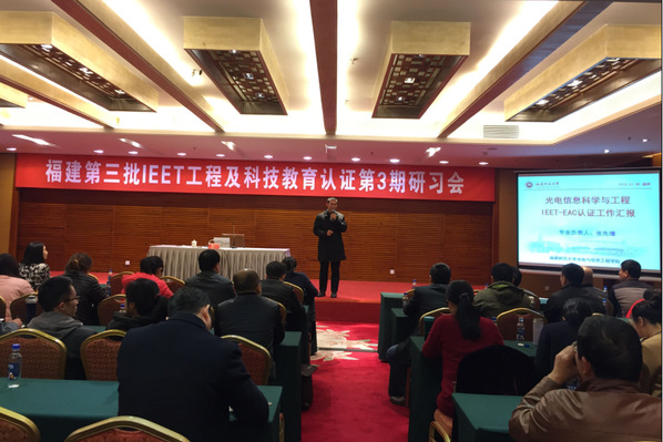 On March 9th, the Education Department of Fujian Province held Certificate Issuing Ceremony and Expert Training Meeting of IEET Engineering and Technology Education Certification Program of Fujian Universities in Fujian Hall.The second batch list of 26 disciplines accredited by the IEET Engineering and Science and Technology Education was released at the meeting, among which were Photonic and Electronic Science and Engineering at the College of Photonic and Electronic Engineering and Bioengineering at the College of Life Science. The accreditation was valid from August 1st, 2017 to July 31st, 2020. It’s the first time that the engineering disciplines in FNU were accredited by the diploma mutual recognition agreement on international engineering education—the full member of Washington Accord. In addition, the director of Photonic and Electronic Science and Engineering was invited to share the experience of accreditation in the third workshop of Taiwan IEET Engineering and Science and Technology Education Accreditation on March 3rd.