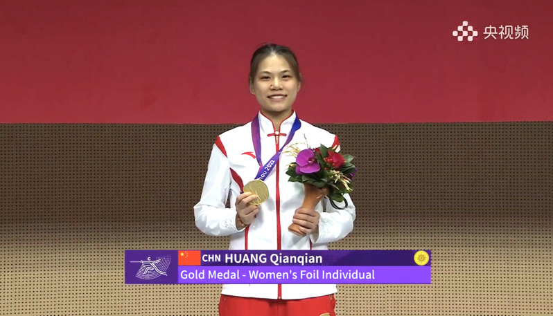 Among them, Huang Qianqian, undergraduate in class of 2025, majoring in sports training, won the gold medal in women's foil individual competition. Chen Qingyuan, undergraduate in class of 2024, Huang Qianqian, undergraduate in class of 2025, and Wang Yingying, undergraduate in class of 2027, won the women's foil team championship with their teammates. Dong Wenxin, undergraduate in class of 2026, cooperated with her teammates and won the gold medal in women's water polo, achieving four consecutive Asian Games championships and winning the ticket to the Paris Olympic Games. Ou Xuanyi, graduate student in class of 2023 with his teammates won the gold medal in man’ team events in badminton.