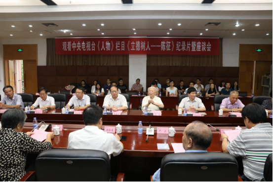 On September 10th, a feature documentary Establishing Morality & Cultivating Talents - Chen Zheng was broadcast on the program Peopleof CCTV-10 Science and Education Channel. On the afternoon of September 11th, FNU organized a documentary watching and held a symposium on it. The attendees included Chen Zheng, one of the first batch of experts and scholars with moralityand professional excellence in the philosophy and social sciences circle of the Publicity Department of the Central Committee ofthe Communist Party of China (CCCPC), the only winner of the world “Marxian Economics Award” in 2018 and former president of FNU, Prof. Li Jianping, chief expert of the Marxist Theoretical Research and Construction Project of the CCCPC, director of the National Research Center of Socialist Political Economics with Chinese Characteristics (Fujian Normal University), and former president of FNU, Prof. Pan Yuteng, deputy secretary of FNU Party Committee, heads of the relevant departments and divisions of FNU, alumni representatives, teacher and student representatives of the School of Economics, amounting to about 70 people.