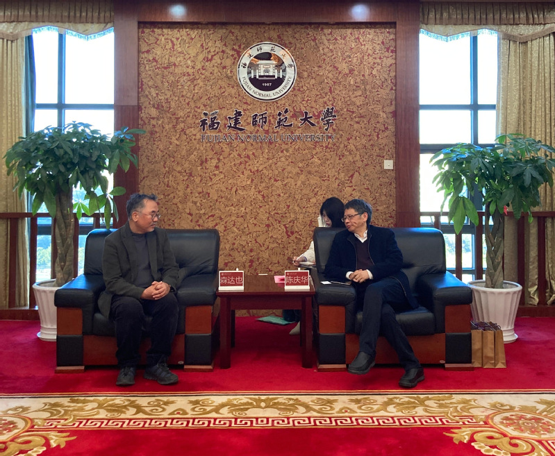 On January 3rd, a delegation led by Vice President Mori Tatsuya of Okinawa Prefectural University of Arts, Japan, visited Fujian Normal University (FNU). Chen Qinghua, Vice President of FNU, met with the visiting delegation, accompanied by Wang Yaohua, former Vice Chairman of Fujian Provincial Committee of the Chinese People’s Political Consultative Conference, renowned ethnomusicologist, and professor at FNU College of Music. Representatives from the International Cooperation and Exchange Office, College of Music, and College of Fine Art also participated in the discussion.
