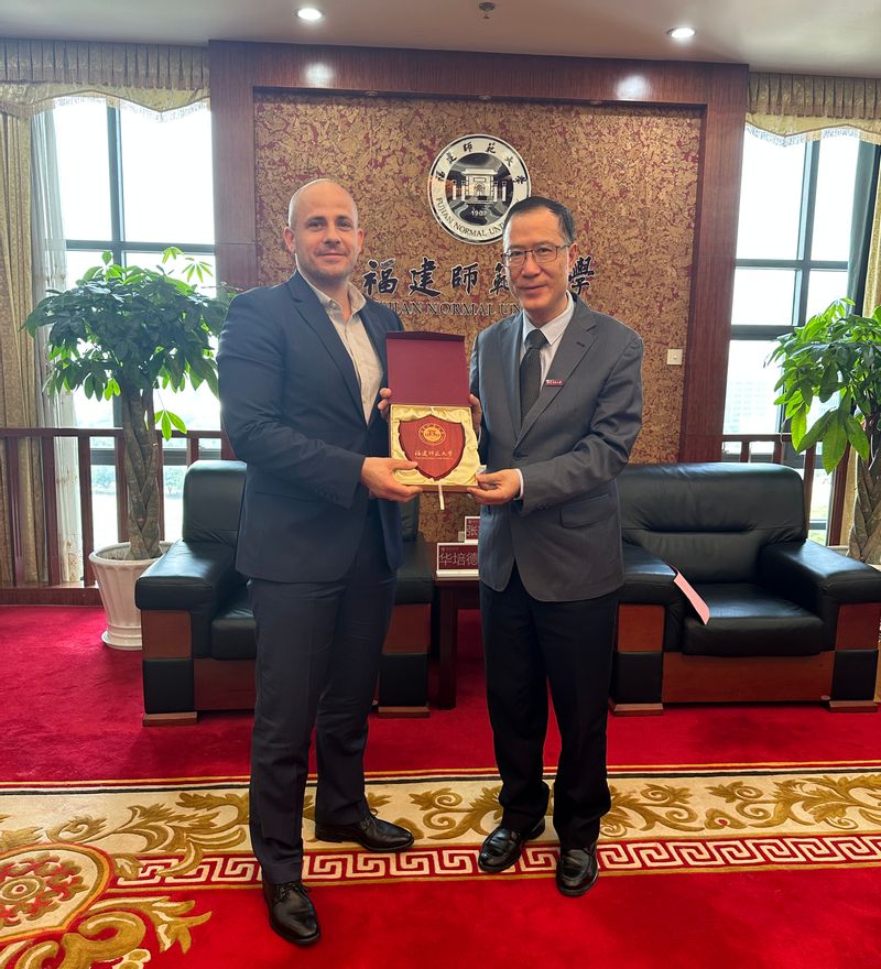 On April 28th, a delegation led by Hungarian Consul General in Guangzhou, Mr. Peter Varfi, and Commercial Consul, Mr. Venato Horvath, visited Fujian Normal University (FNU). President Wang Changping welcomed the guests, accompanied by representatives from the Office of International Cooperation and Exchange and the School of Communication.