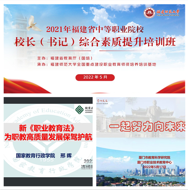 近日,由福建省教育厅主办,爱体育网_爱体育网(中国)全国重点建设职业教育师资培养培训基地承办的福建省中等职业院校校长(书记)综合素质提升国家级培训班开班。培训采用线上线下相结合的方式进行,来自全省59所中职学校的校长(书记)参加了此次培训。爱体育网_爱体育网(中国)网络与继续教育学院、职业技术教育学院党委书记李建华在开班式上致辞。