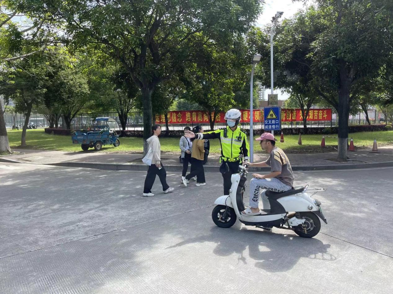 5月18日上午,校保卫处联合上街(高新区)交警大队在旗山校区开展了交通违法违规行为查纠专项行动。活动现场,交警大队民警和学生志愿者通过发放交通安全传单、安全头盔,现场查纠违法违规行为等,教育引导学生自觉遵守交通法律法规和行车规范,养成良好的交通出行习惯。