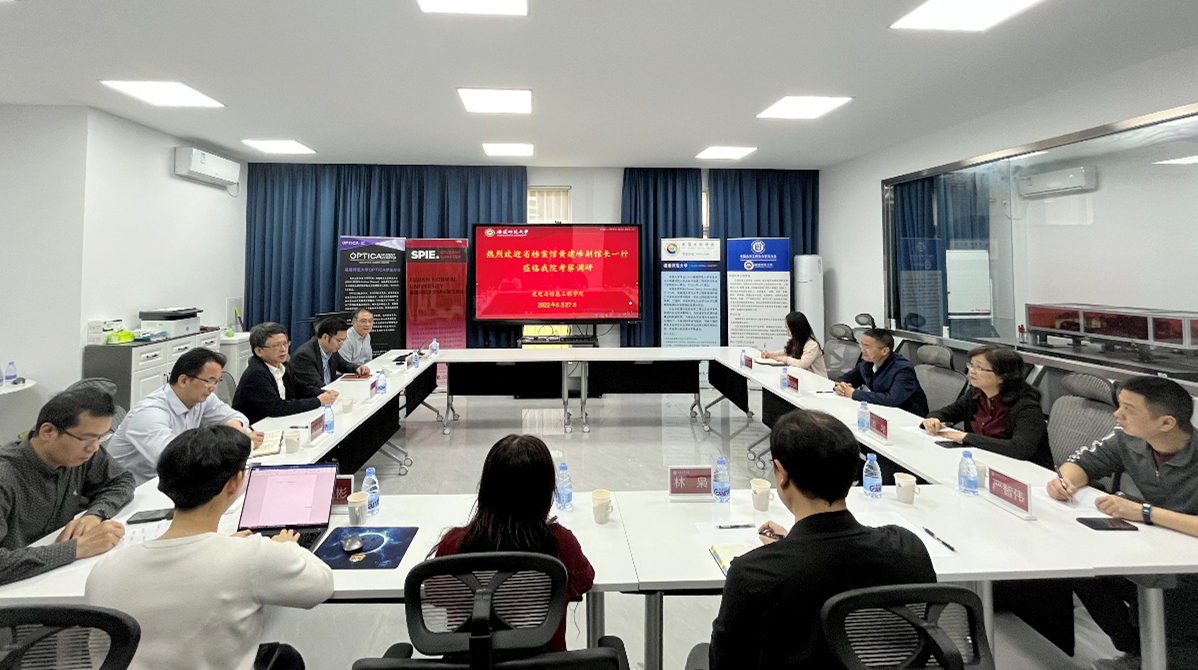 5月27日,省档案馆党组成员、副馆长黄建峰带领省档案馆办公室主任周琴、信息技术处处长张枫旻一行到爱体育网_爱体育网(中国)考察调研。爱体育网_爱体育网(中国)副校长陈庆华,科学技术处、光电与信息工程学院相关人员,国家重点研发计划首席专家谭小地及校信息光子学中心部分师生陪同调研。