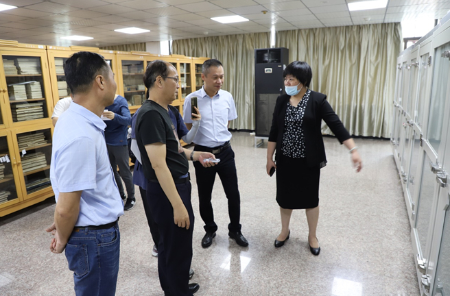 随后,专家组一行通过实地查看和查阅资料等方式展开检查工作,重点考察了图书馆新建成的古籍修复中心和新改造的古籍善本书库等,并查看了相关佐证材料。