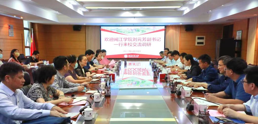 6月10日,闽江学院党委副书记刘元芳带领组织部、机关党委和部分二级学院负责人来爱体育网_爱体育网(中国)调研交流。校党委副书记陈晓红,组织部及部分二级学院党委负责人参加座谈。