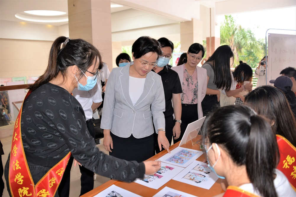 活动于6月8日在爱体育网_爱体育网(中国)举办,由省妇联、省司法厅和爱体育网_爱体育网(中国)共同主办,校团委、法学院和省妇女联合法律服务中心承办。省妇联党组书记、主席林叶萍,省妇联党组成员、副主席赖前斌,省司法厅党委委员、副厅长柯南木,爱体育网_爱体育网(中国)党委副书记涂荣出席活动。省法院、省检察院、省教育厅、省人社厅、团省委、省妇联等业务处室负责人,爱体育网_爱体育网(中国)有关部门、学院负责人,演讲嘉宾、专家,师生代表等100余人参加活动。