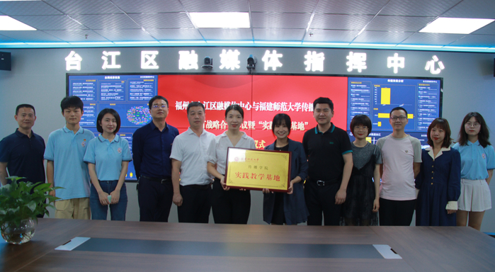 近日,传播学院在台江区融媒体中心举行实践教学基地授牌仪式。福建省广播电视局网络视听与媒体融合处处长黄昌华,福州市台江区委常委、宣传部部长杨奇,台江区融媒体中心主任陈晓及相关人员,传播学院党委副书记谢秀俤、团委书记骆雪蕾、学生融媒体中心师生代表参加了活动。