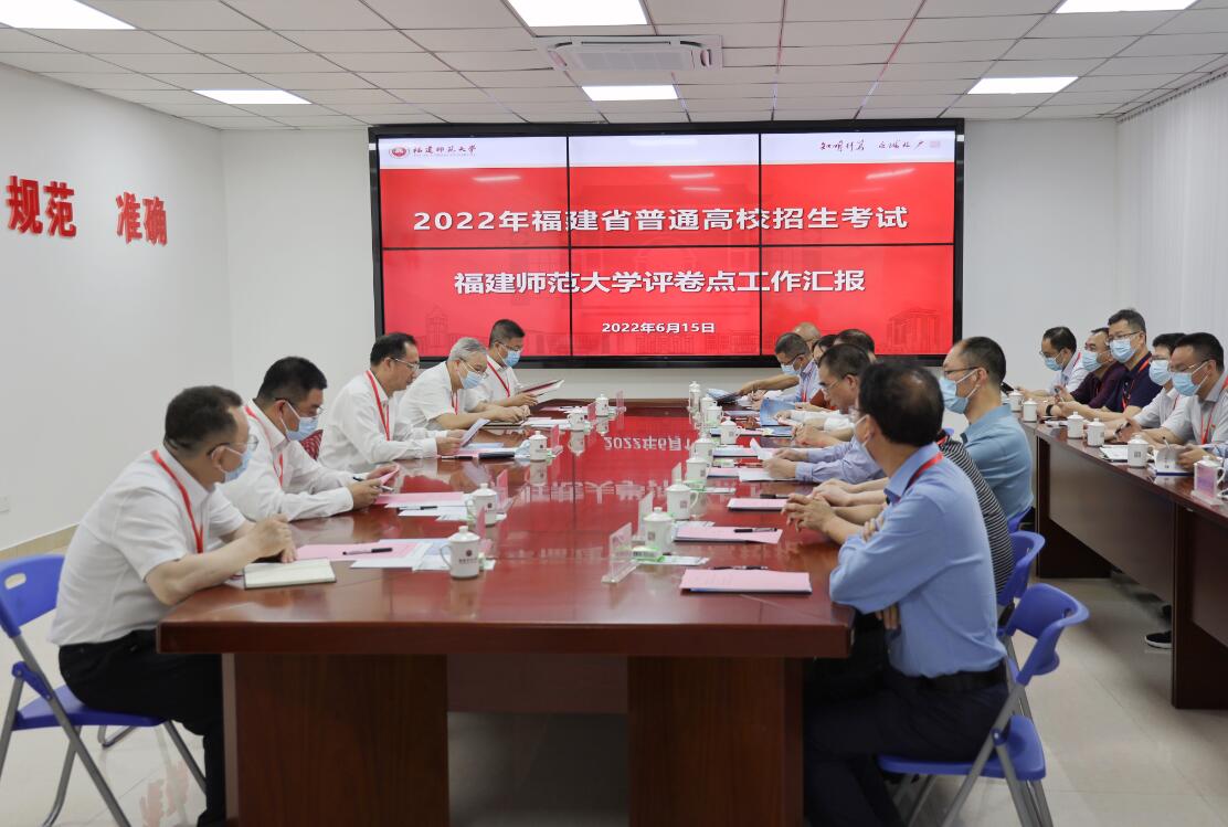 6月15日,副省长、省招委会主任李德金到福建省普通高考爱体育网_爱体育网(中国)评卷点,检查指导2022年我省高考评卷工作,看望慰问评卷教师和工作人员。省政府副秘书长杨闽红,省教育厅厅长林和平,省教育考试院党委书记林清泉、院长黄俊兴,爱体育网_爱体育网(中国)党委书记潘玉腾、副校长郑家建、纪委书记、监察专员林月恩陪同检查指导。